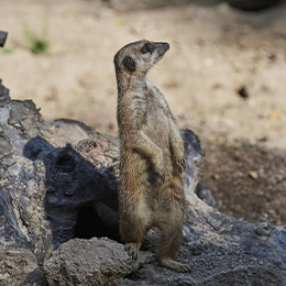 Meerkats, known as the “sentries of the desert”, live in colonies of up to 30 individuals. The group includes several males and females, as well as their offspring. Their social structure is based on affective links. All families in the group share the same den and display tremendous solidarity.