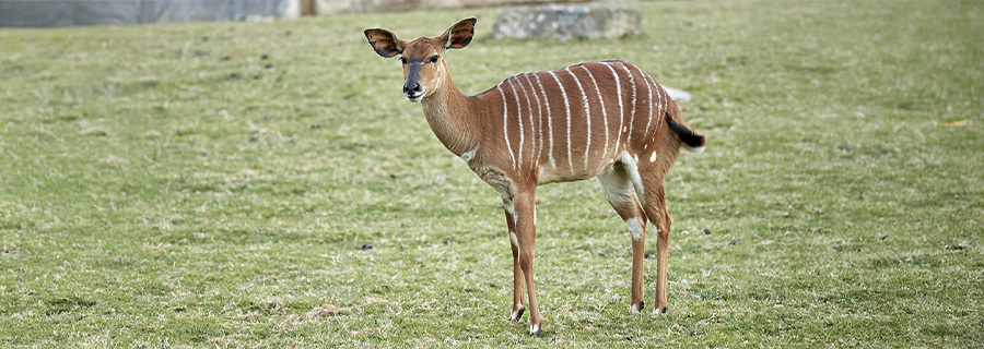 Nyalas can stand on their hind legs in order to reach the leaves and bark of trees.