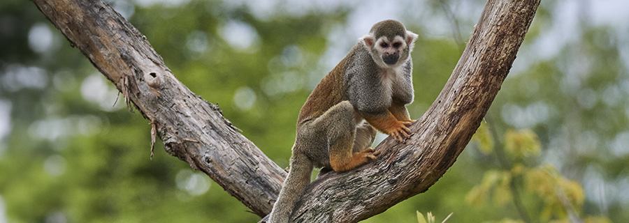Squirrel monkeys mark their territory by sneezing and urinating. Like most primates, they socialise by grooming one another and communicating with vocal calls. They alert the entire group if a predator (eagle or snake) approaches or if a new feeding zone is found. Squirrel monkeys live in the company of other primates (capuchin monkeys or other members of the cebus genus) in order to benefit from their exceptional vigilance when it comes to predators. The group is followed by animals including toucans, which fly in to catch any creatures disturbed by the primates’ movements. Fish also benefit from any fruit knocked into the water.
