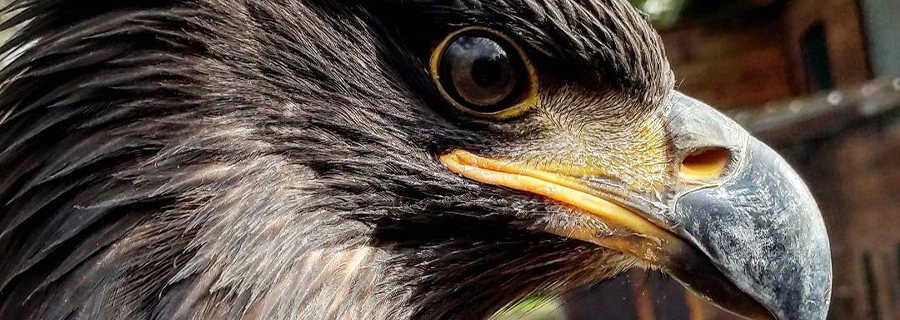 Yukon lives alone in his aviary but during the presentation he flies with the other eagles of the park (bald eagles but also bald eagles).