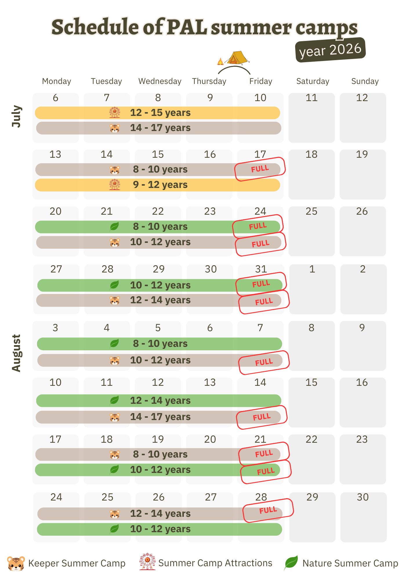 Please note, summer camp dates differ depending on the ages of the children.