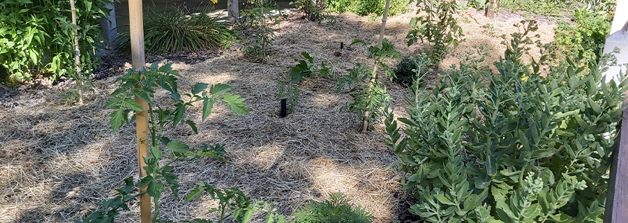 Usually very flowery, its appearance has changed this year. The young people of the PAL Academy have taken over this space since September to grow fruits and vegetables for our animals: