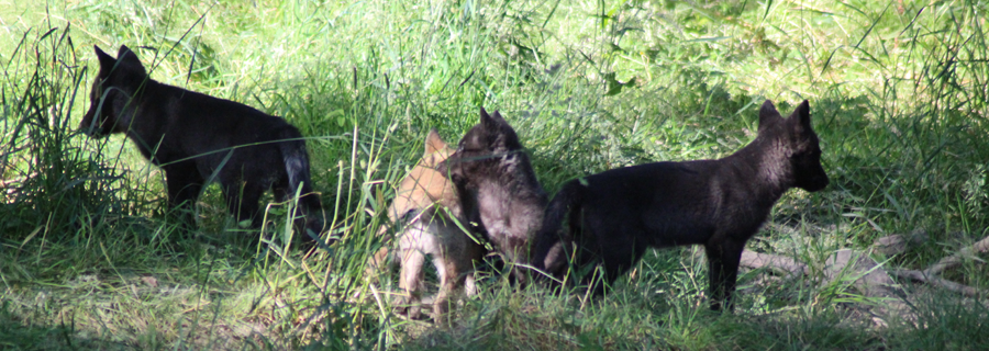 Hoona gave birth to 5 cubs on April 23, 2021. We have three females, Freya, Skadi, Yetu and 2 males, Loki and Togo. The parturition could not be seen by the caretakers and Hoona, the dam only appeared every 2-3 days, which is a good sign. It shows that the mother is confident. She moved her cubs 12 days after birth, which is very early as the babies are still blind at that time. She moved them at 3:00 p.m. in the afternoon, allowing the healers to see and count them. Since June 9, you can come and observe Hoona, Kenai and their 5 cubs accompanied by our 3 other Canadian Wolves in the Wolf Forest.