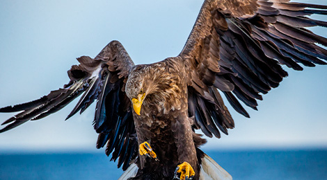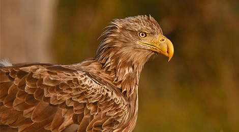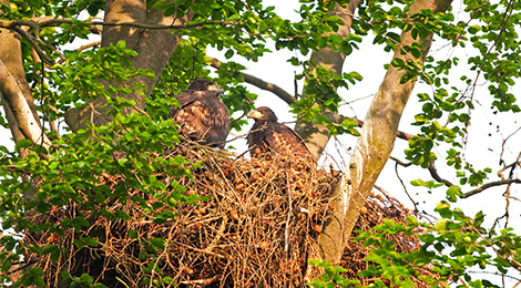 In France, the white-tailed eagle nests on a solid tree in a quiet wood, sheltered from disturbance. The nest is refilled each year at the end of winter, the male bringing most of the materials while the female arranges the nest. -
